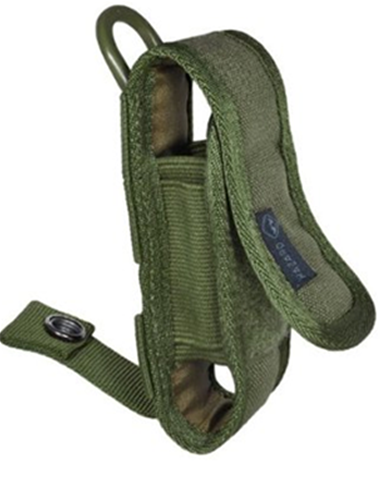 double layered fabric pads the contents well _ double-side elastics for storing extra batteries etc _ comes with d-ring for hanging on lanyard etc. _ fits horizontally onto most narrower dress belts . By Hazard 4
