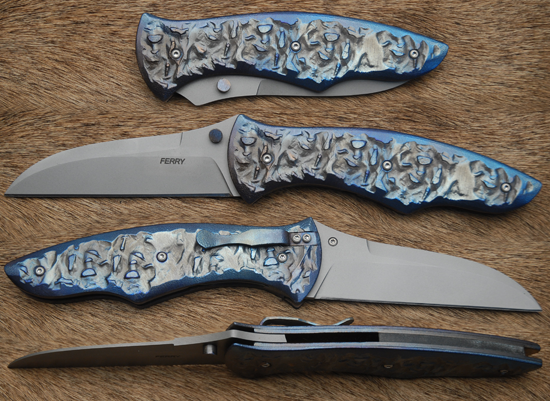 This is an incredible knife. The texture on each knife is unique and feels great in the hand. The scales are produced from Texture Tech Titanium. The blade is bead blasted to be anti-reflective and is sharp as a razor