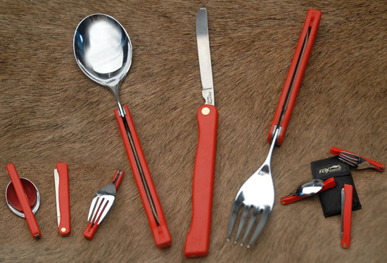 The Fox Knives folding tableware set is an essential item for any camping/survival pack. This conveniently sized utensil set features a knife, fork and spoon that fold up to fit in a nylon belt sheath. The utensils are made from 420C stainless steel and the handles are made from black polypropylene. The simple, lightweight design of these folding utensils is perfect for use in the great outdoors!