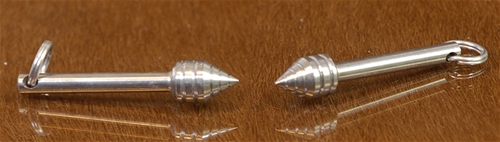 This a hand machined titanium bead keeper (an alternative to paracord). The post is slightly less than 1/4" in diameter and 1.5" long from the shoulder to the bottom of the stainless split ring.
