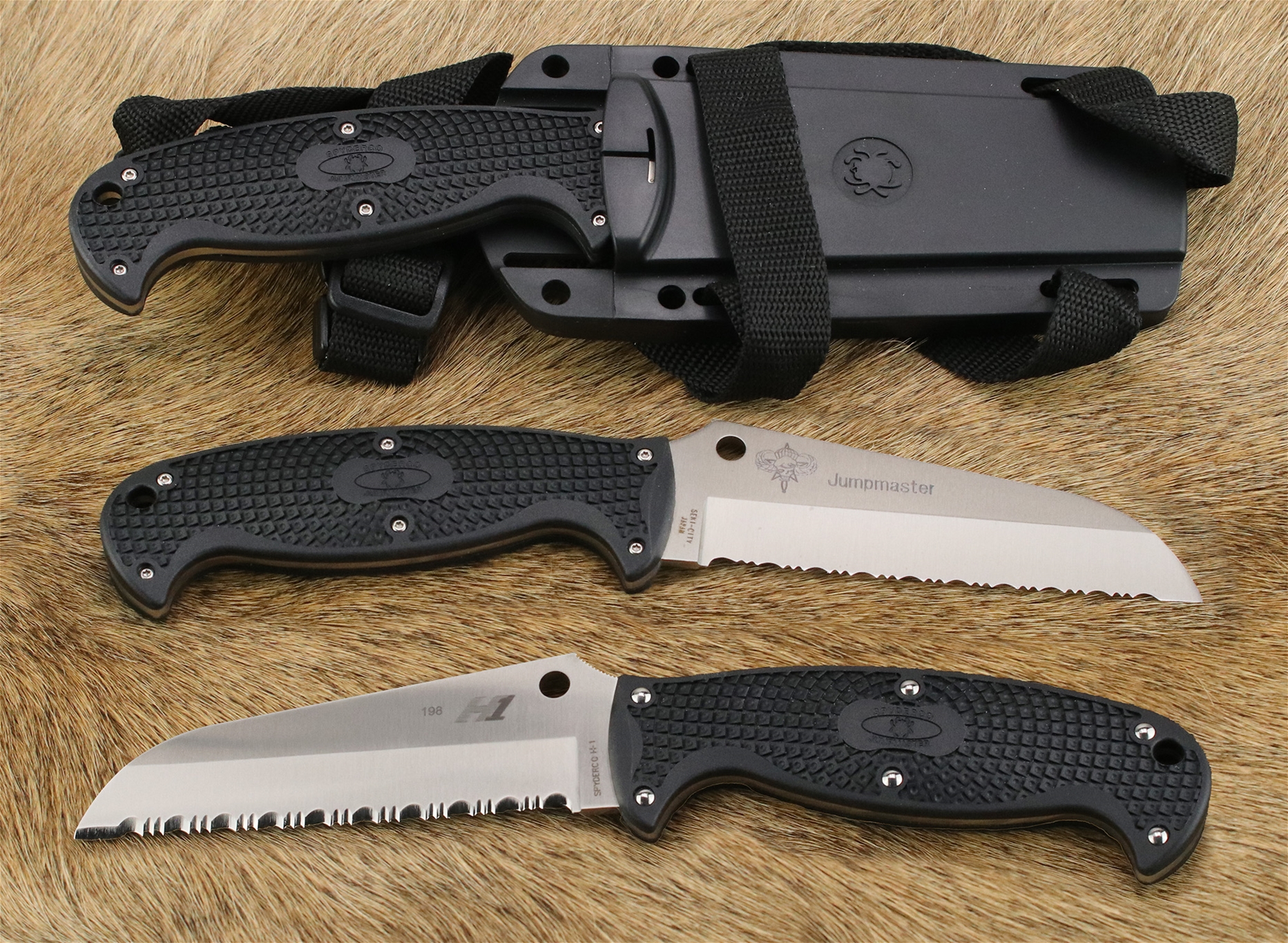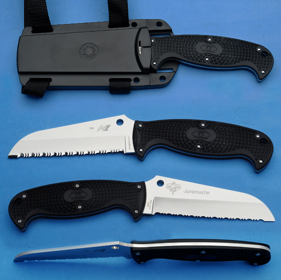 Developed in close cooperation with the jumpmasters of the U.S. Army’s 82nd Airborne Division, the Spyderco Jumpmaster is a high-performance cutting tool specifically designed to support airborne operations. Jumpmasters are specially trained personnel who oversee airborne troops as they exit an aircraft during parachute operations. If a soldier hangs up and his chute fails to deploy, the jumpmaster must quickly and safely cut the static line to free the jumper.