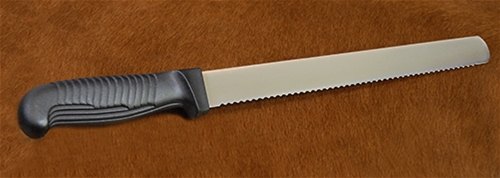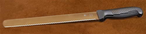 Few kitchen cutting chores challenge a serrated edge more than cutting bread—especially soft, freshly baked bread. Spyderco’s all-new K01 Bread Knife redefines the breed by combining our time-tested original design with more than 40 years of hard-earned experience and in-depth research and development of serrated edges. The K01’s exceptionally thin blade is crafted from corrosion-resistant MBS-26 stainless steel and expertly heat treated to yield a superior combination of sharpness, edge retention, and flexibility. It features a highly refined serration pattern that cuts soft breads and cake without crushing or tearing, yet is still capable of powering through hard-crusted baked goods almost effortlessly. The exceptionally long blade adds to the knife’s cutting power and control, supporting clean, precise push or pull cuts with equal ease. To ensure a secure, comfortable grip and construction that will stand the test of time, the K01features an ergonomic, textured polypropylene handle with a stepped texture that is injection molded directly onto the tang.